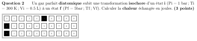 \begin{questionmultx}{CalcQisoV} % sur 3 points - Tolérance 10 et 15